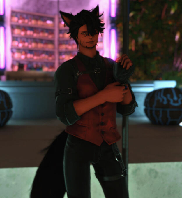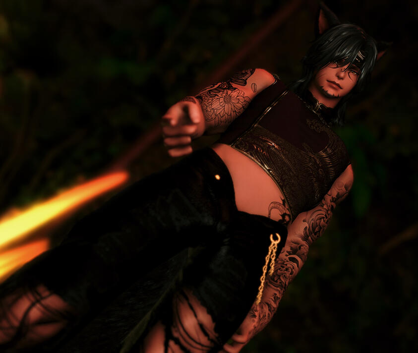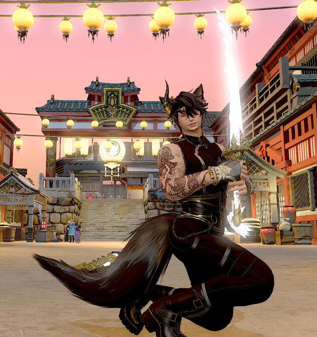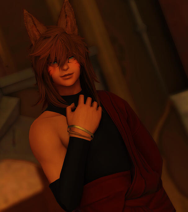 Orion Kimura, a doman refugee, spent his younger years in New Gridania along with his mother, father, and two brothers. Most of his childhood was spent running around with Faen and Faen's twin sister Fae, getting into all kinds of shenanigans. Over time, Orion began to fall in love with Faen, and now they are happily married. Their relationship is more open, so don't worry guys, gals, and nonbinary pals, you still have a chance. The kitsune is a skilled samurai, having traveled back to Doma as a young adult to hone his skills and train under Lord Hein. He’s a very outgoing, friendly guy, and loves making conversation and meeting new people. The Immortal Flames recognized his skill, character, and ambition, and Orion quickly climbed the ranks, eventually holding the rank of General. His current position in the Immortal Flames keeps him busy, but he can be found having a good time at venues, gambling, or walking his pet carbuncle(s) when he's not working