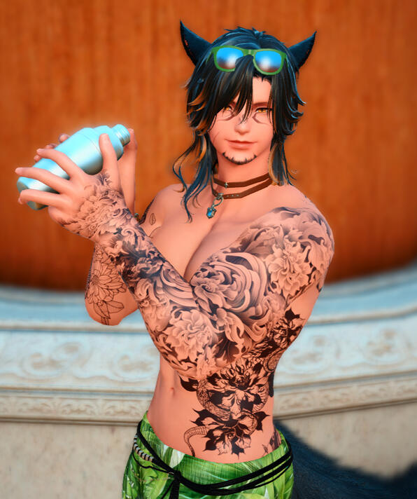 Orion Kimura, a doman refugee, spent his younger years in New Gridania along with his mother, father, and two brothers. Most of his childhood was spent running around with Faen and Faen's twin sister Fae, getting into all kinds of shenanigans. Over time, Orion began to fall in love with Faen, and now they are happily married. Their relationship is more open, so don't worry guys, gals, and nonbinary pals, you still have a chance. The kitsune is a skilled samurai, having traveled back to Doma as a young adult to hone his skills and train under Lord Hein. He’s a very outgoing, friendly guy, and loves making conversation and meeting new people. The Immortal Flames recognized his skill, character, and ambition, and Orion quickly climbed the ranks, eventually holding the rank of General. His current position in the Immortal Flames keeps him busy, but he can be found having a good time at venues, gambling, or walking his pet carbuncle(s) when he's not working